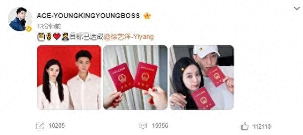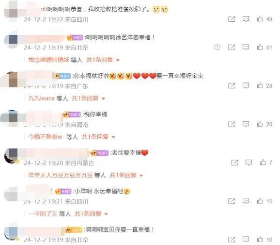 2024年12月2日19:19,黄子韬、徐艺洋微博同一时间发文官宣领证结婚。