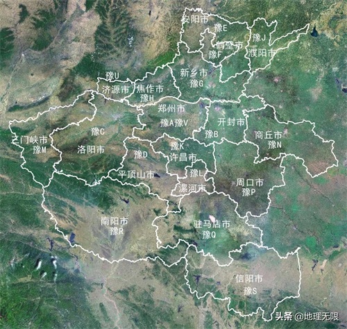 河南省车牌号首字母分布地图(卫星图)