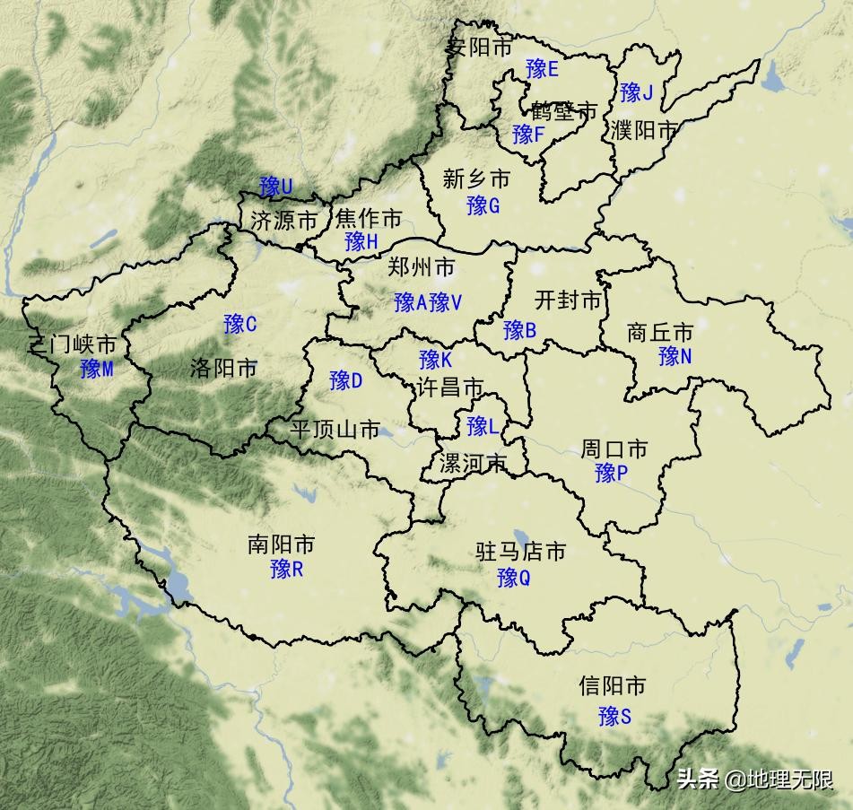 河南省车牌号首字母分布地图(地形图)