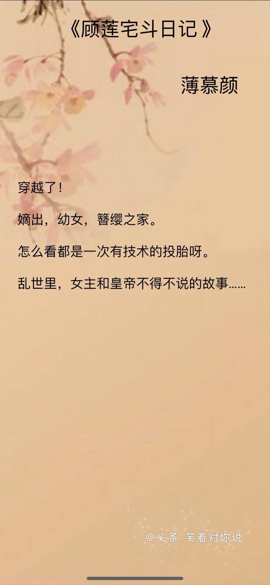 今天主要来讲讲《顾莲宅斗日记》这篇文,这是一篇网上骂声连篇,直呼毁三观的小说。但是由于真的很少看到这类型的小说,真的让人印象很深刻,很少让我一字不落的看完的小说,哈哈哈!