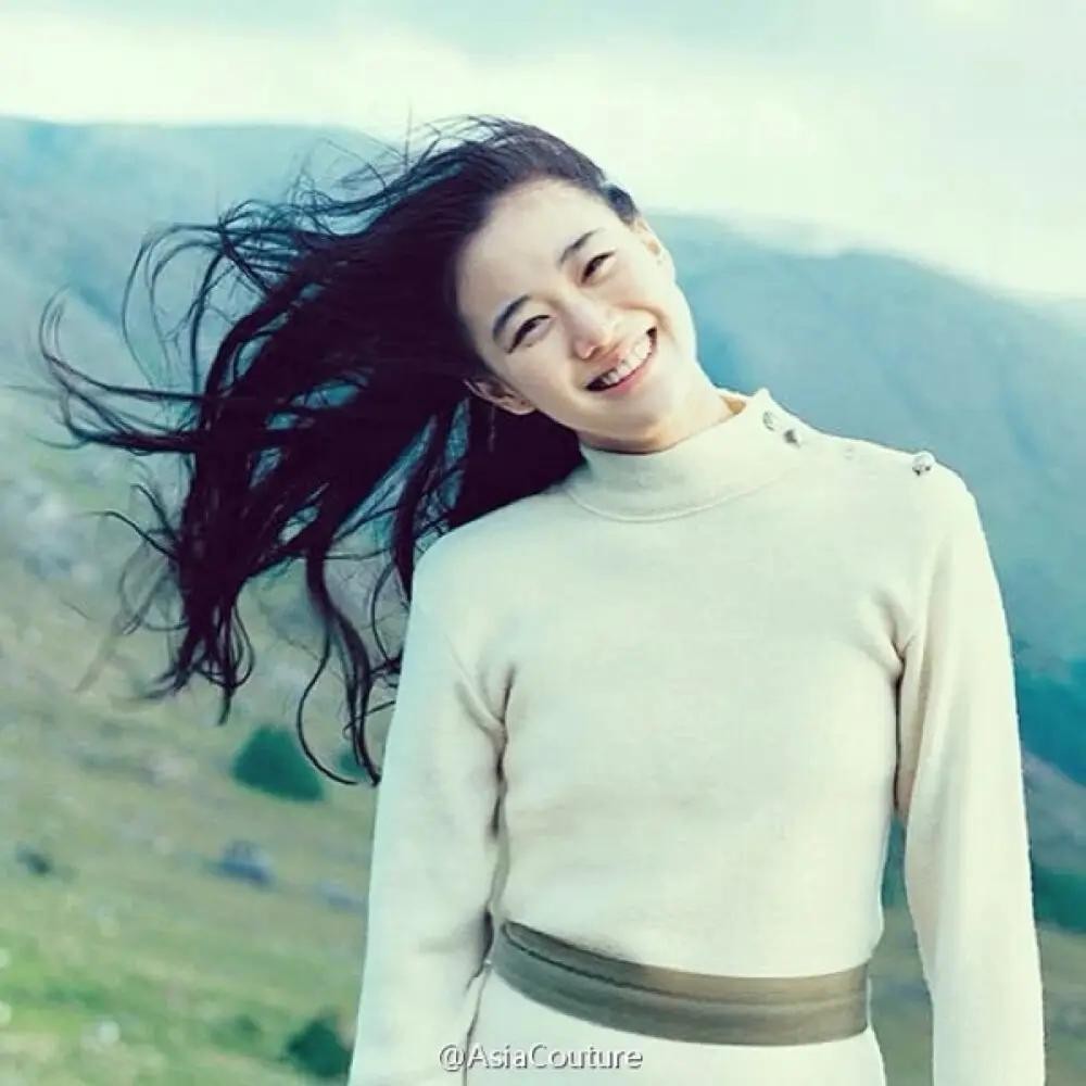 图2,是苍井优小姐姐在风景美丽的山迎着山上的微风。那飘逸的长发在风中飘扬,再加上她的清澈的微笑。真是太美的画面。