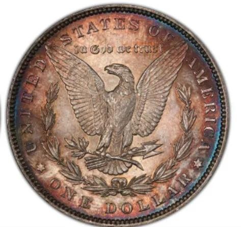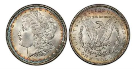 历史:美国摩根银元是以其设计师乔治.摩根命名的一款美国法定1美元银币,铸造年份分别是从1878年到1904年,以及在1921年发行,摩根银元正面为为自由女神头像,头带上有LIBERTY(自由),下方为13颗星,代表美国独立时的13州,背面为鹰徽,双爪紧握橄榄枝与箭,整体设计美观,在国外收藏人群众多。