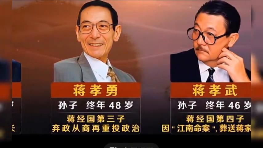蒋孝文,长子终年54岁,蒋经国长子,因咽喉癌病逝于台北。