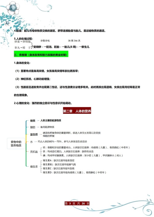七年级下册生物每章思维导图+精华知识!背熟了直接考第一名!