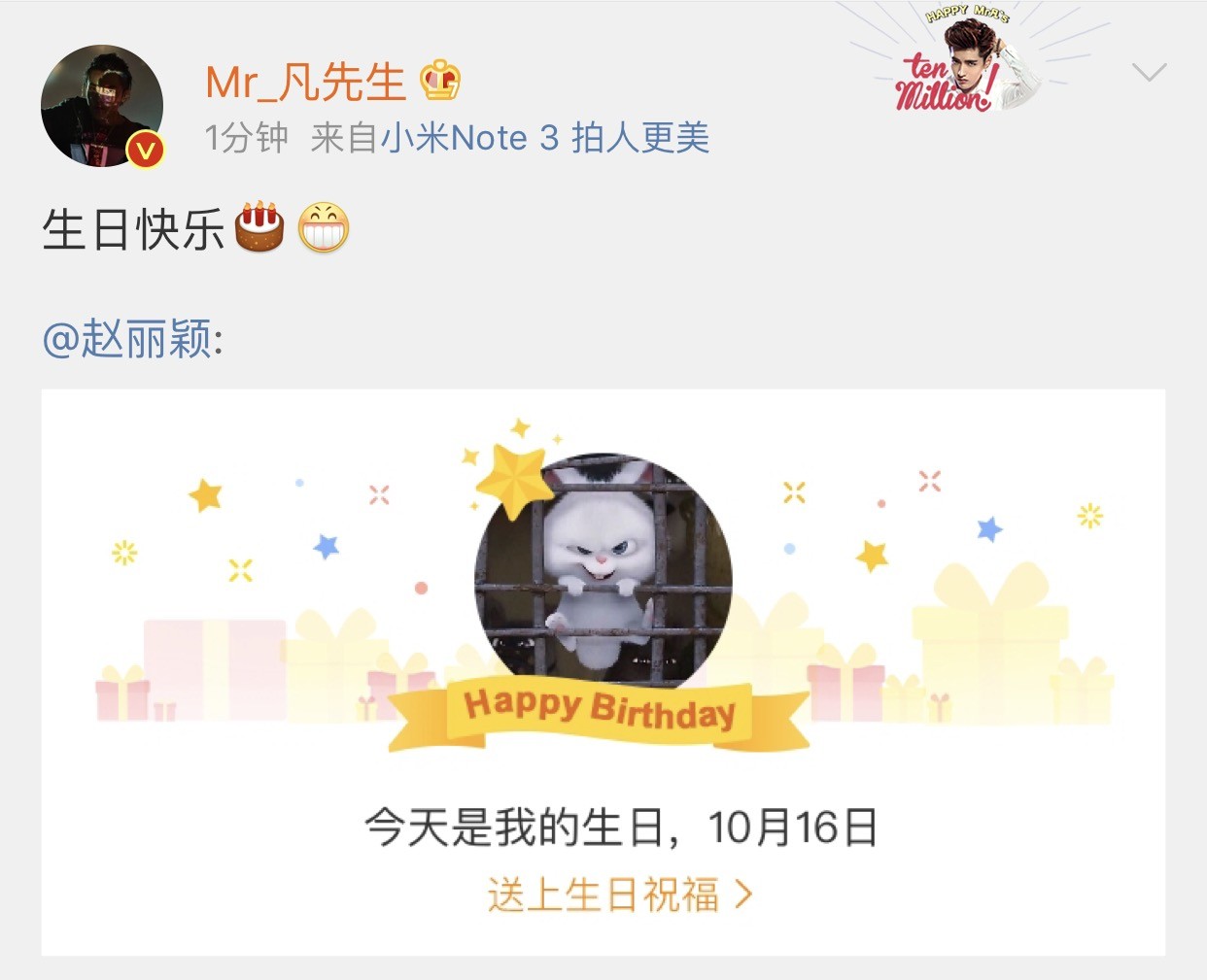 赵丽颖生日,吴亦凡给赵丽颖送上祝福?