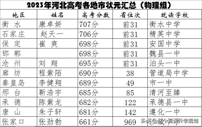 今年河北高考,各地市物理组状元的排名。唐山还得加油呀!#高校录取季##唐山新鲜事儿##河北状元##河北高考#