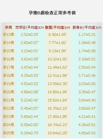 孕妈产检后可以拿自己的B超单与正常值数据进行对比,这样就可以清晰的知道自己的宝宝发育情况了。