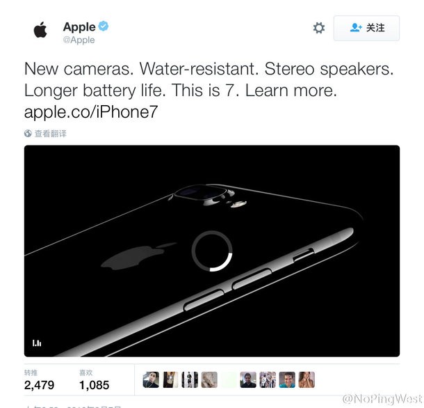 中关村在线消息:苹果新品发布会正在进行中,现在正在讲解Apple Watch2。但是,苹果官博的编辑似乎已经有点迫不及待了!就在刚刚,苹果官方公布了iPhone 7 Plus的真机宣传照。