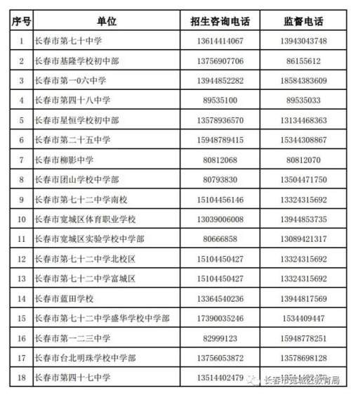 转需!长春这些学校公布招生咨询、监督举报电话