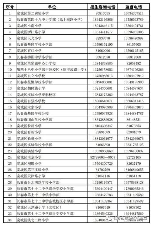 现将宽城区中小学校的招生咨询及监督举报电话公布如下