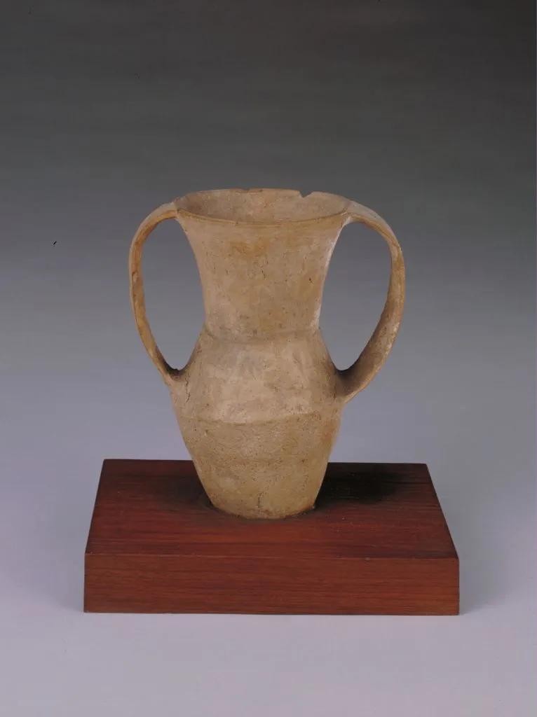 齐家文化反映出当时的制陶业显著进步,陶器多为泥质红陶蓝纹罐、夹砂灰陶绳纹罐。红陶双耳杯具有齐家文化的突出特征和鲜明风格,临洗县出土的一件红陶双耳杯,外壁雕塑着一只小鸟,既实用又美观,反映出当时人们烧制陶器的高超技术和审美情趣。