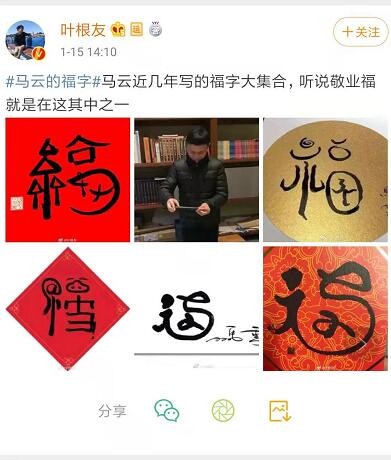 马云亲手写的福字图片全集 马云亲自写福字必出福卡图