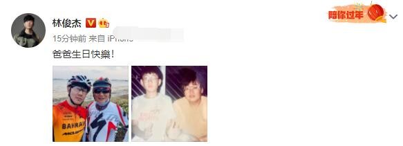4月20日,林俊杰在个人社交平台上晒与爸爸的合照为其庆生,同时,林俊杰还晒出了一张小时候与爸爸合影的旧照。