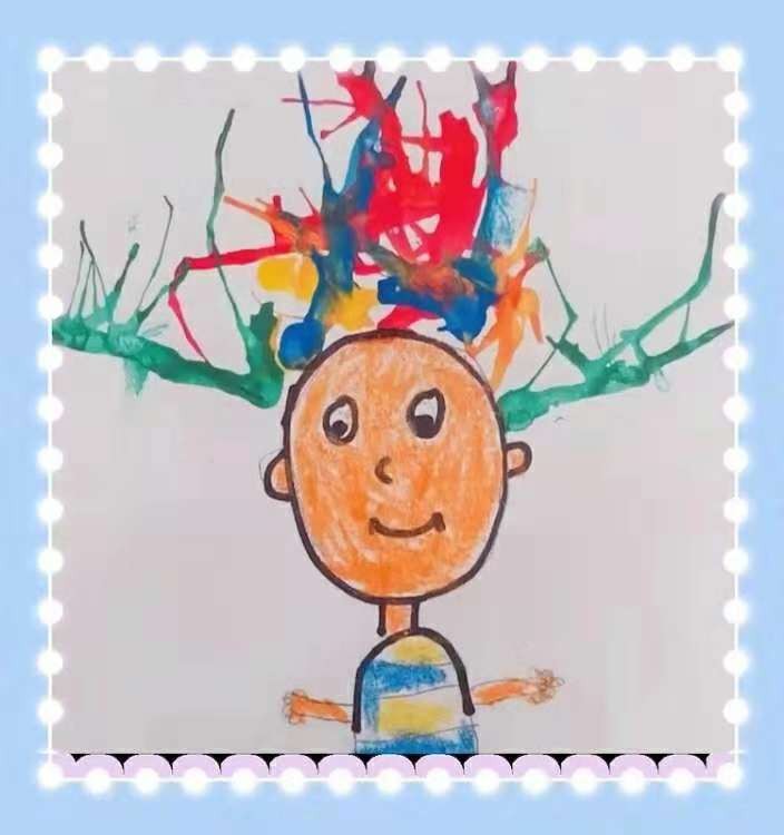 1.选出喜欢的颜色,在纸上滴一滴,鼓足劲朝一个方向吹。