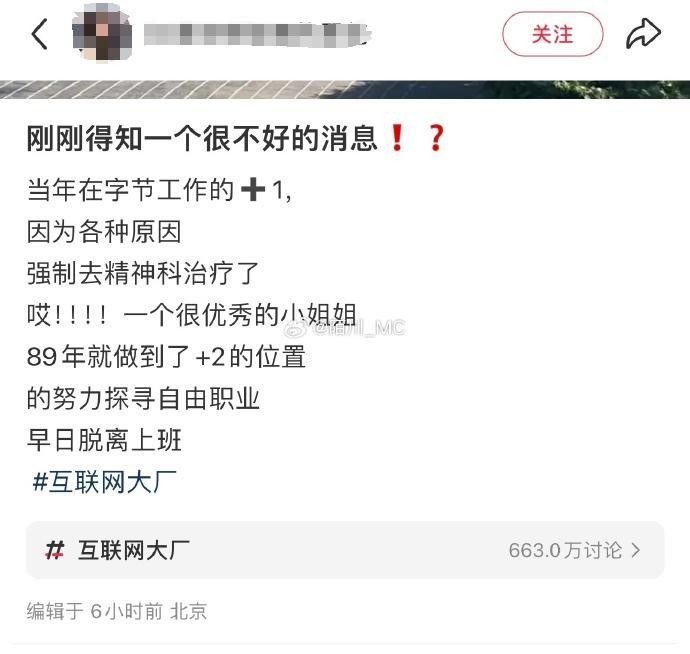 南财快讯·辟谣旋风队注意到,近日,有网友发布字节跳动工作压力大致员工精神不正常入院治疗等相关内容。