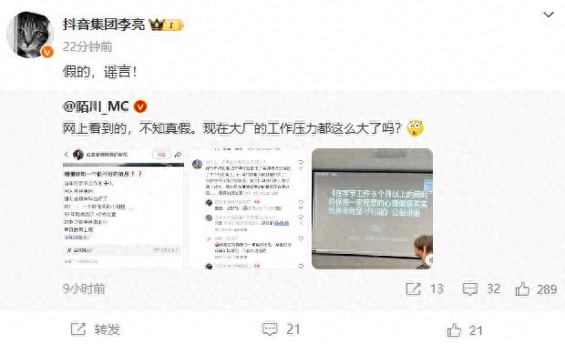 员工压力大入院治疗?抖音副总裁回应:假的,谣言