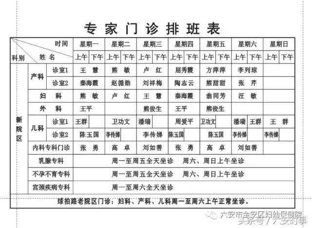 专家排班表