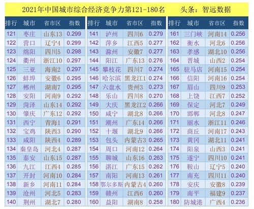 2021年中国城市综合经济竞争力第121-180名