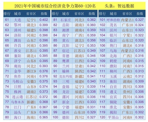 2021年中国城市综合经济竞争力第60-120名