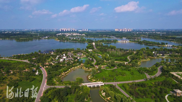 俯瞰河北省邢台市在采煤塌陷区建成的园博园。