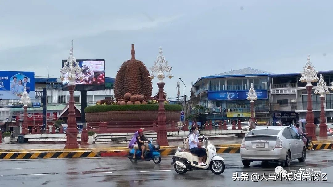 这里产榴莲吗?柬埔寨的贡布也有很多华人!永远是“计划赶不上变化”,随心而行的我们,原来也计划直奔到西哈努克港Sihanouk,但天色已晚,加上我爱人这几天一直牙疼、腰疼,也是辛苦,直接在贡布kampot休息一晚。途中一小段遇到破路,前面的路就稍微比较好,让我纳闷的是,为何这一小段破大洞的路,没有人维修,而且每天都会有很多人走这条路,各个却无动于衷,可见人们也已经心灰意冷,我却看着痛苦。地图上出现了榴莲环岛,很好奇这里是不是也跟马来西亚一样生产榴莲?