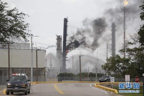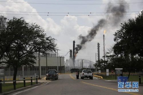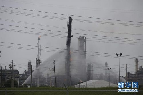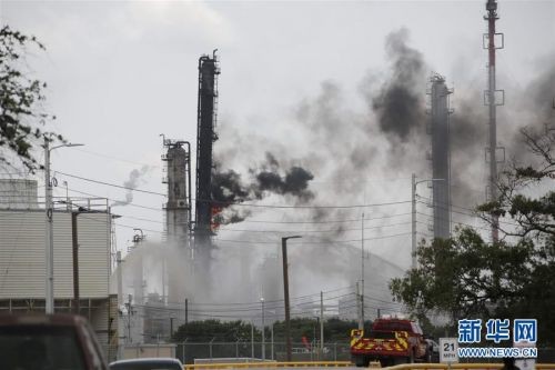 7月31日,在美国得克萨斯州贝敦市,发生火灾的炼化厂升起浓烟。 美国得克萨斯州一家炼化厂7月31日发生火灾,导致37人受轻伤。 新华社发(劳承跃摄)