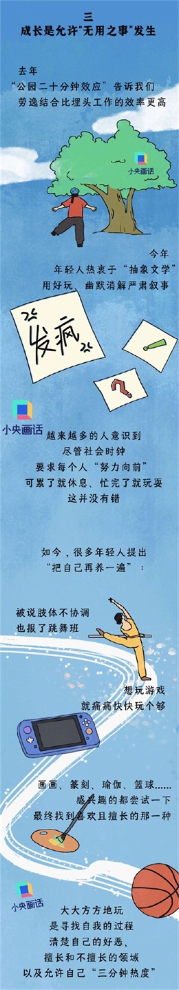 其实,在工作和学习之外,我们需要爱好、旅行、朋友......生活的支点越多,内核越稳定,玩不是“不务正业”,是低谷时托举我们的精神力量。