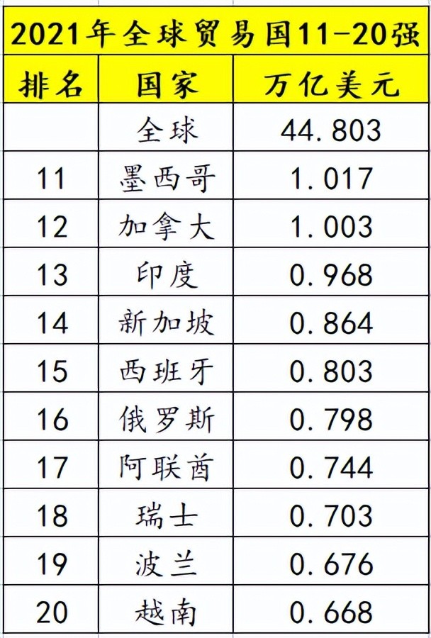 我们的邻居,一直希望成为“世界工厂”的越南,2021年外贸总额为0.668万亿美元,进入了全球第20名,表现还是很不错的。不过,我国是其9倍,差距还是很大的。