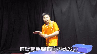 再来练习一下在发球的时候稍微的加入一点手腕的摩擦,但注意这个手腕的摩擦,也不要手腕自己动幅度太大,拍面不要改变过多,还是用前臂的发力去带动手腕抖动,拍子稍微握松一点,有一个瞬间的抖动就可以出来旋转。