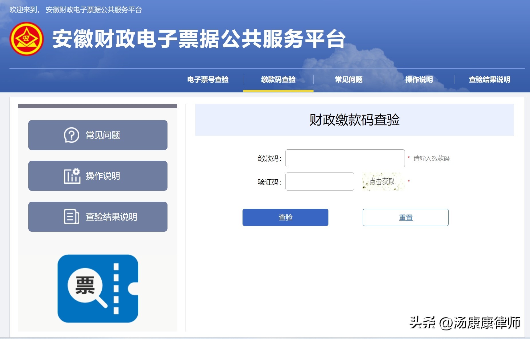 缴纳工伤鉴定受理费、法院诉讼费等各种政府收款费用,凭缴款通知单上的缴款识别码(一般是20位的数字+字母),登录安徽财政电子票据公共服务平台(