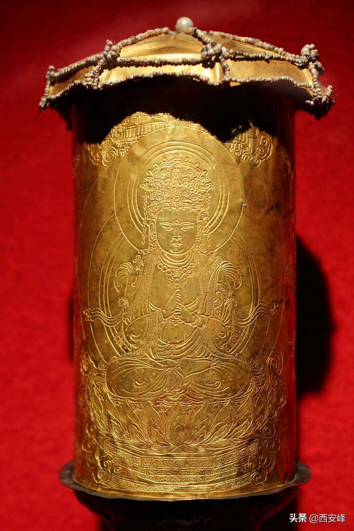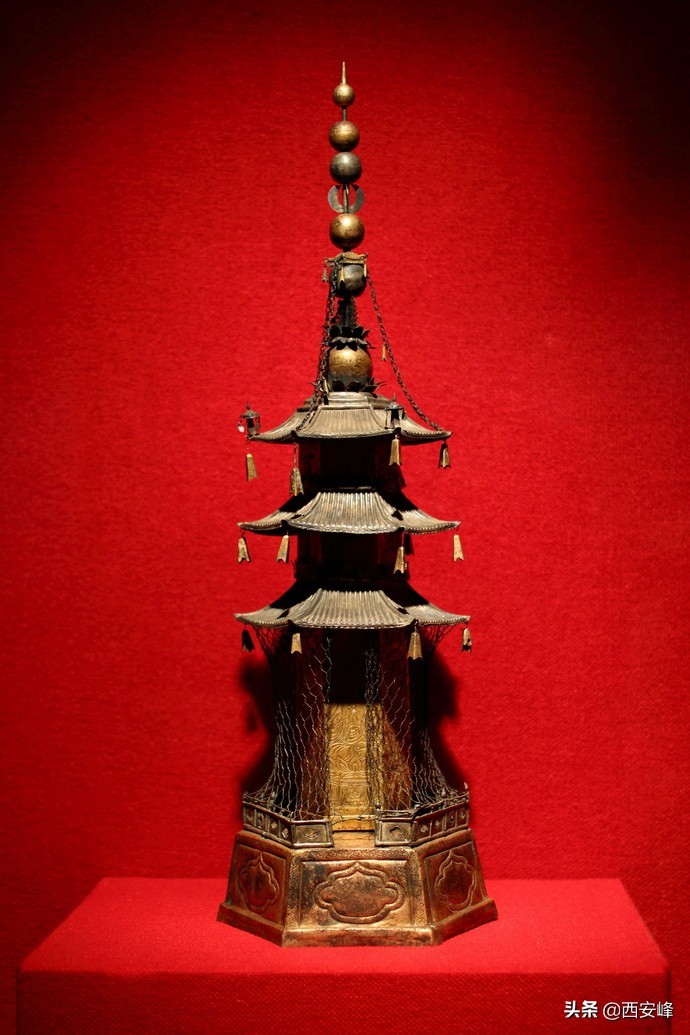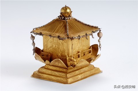 国家一级文物:金舍利塔,高11厘米,用于安葬释迦牟尼佛舍利的金塔,出土时塔内藏有玛瑙舍利罐。