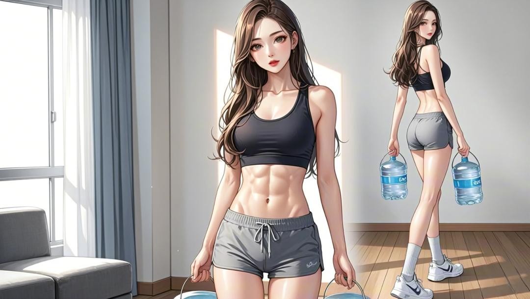 双手持重物(如水桶),保持躯干直立行走。避免肩膀倾斜,步伐稳健。