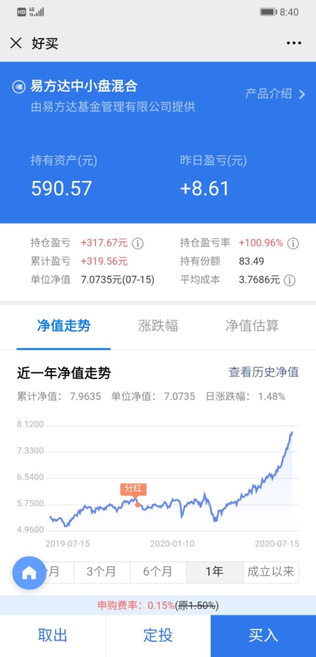 虽然自己在易方达中小盘上面没赚到钱,但收益率破100%还是有留念价值,记录一下
