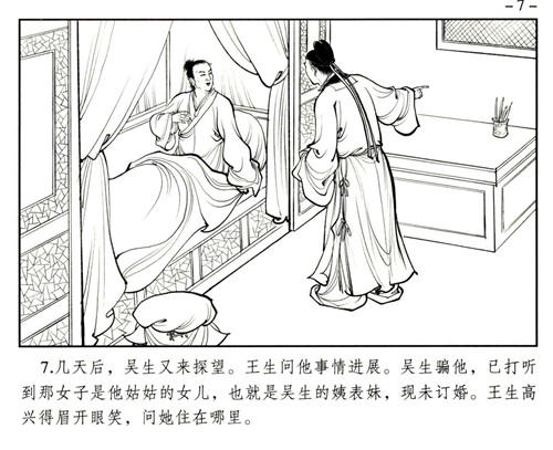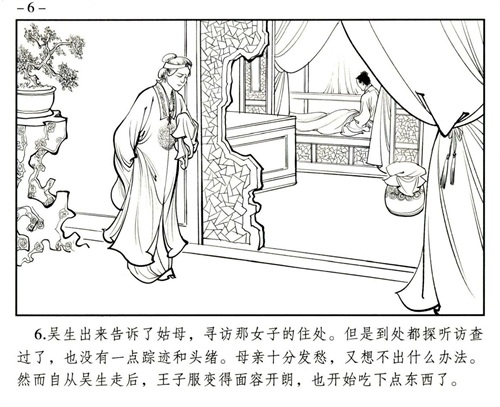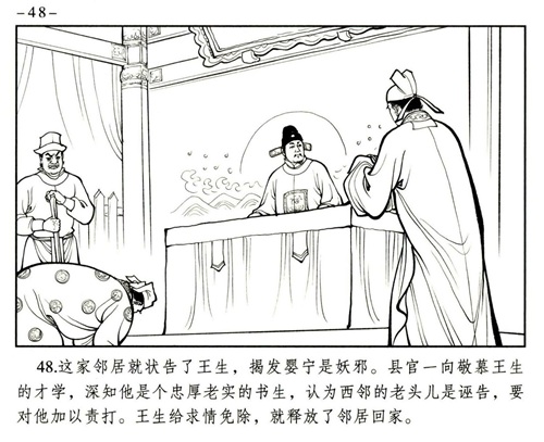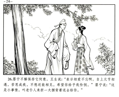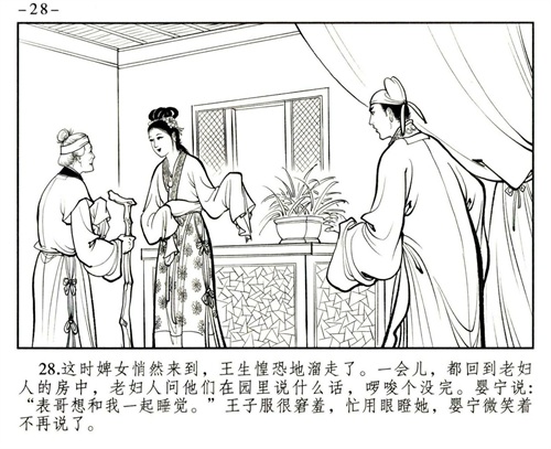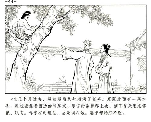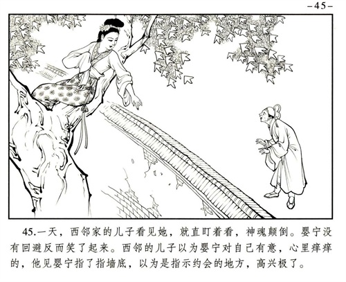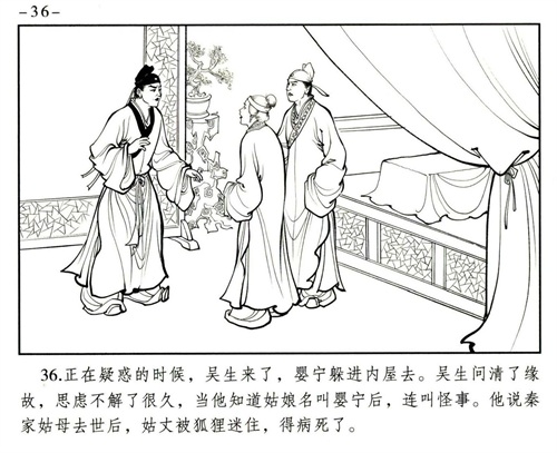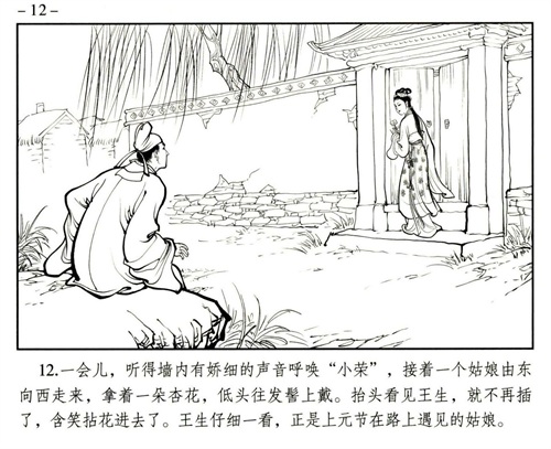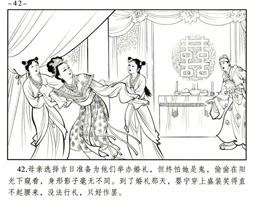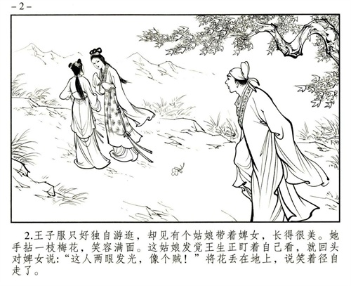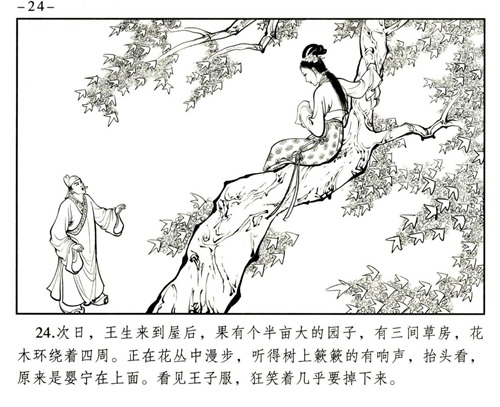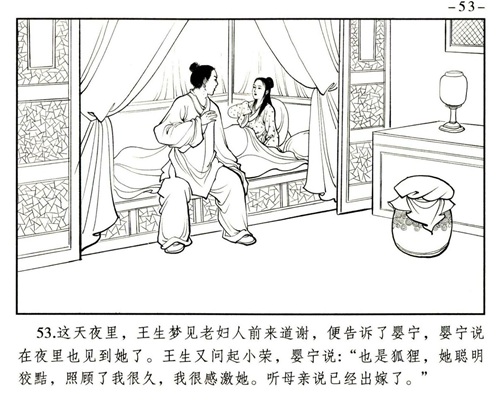 《聊斋志异》中的《婴宁》讲述了一个关于狐仙和鬼魂所生孤女婴宁的故事。婴宁为了将母亲的骨骸与所爱之人并骨,用计进入王家。王子服是一位一心科举的小书生,因为在一次郊游中遇见了婴宁,对她一见钟情,饱受相思之苦,最终迎娶婴宁过门。
