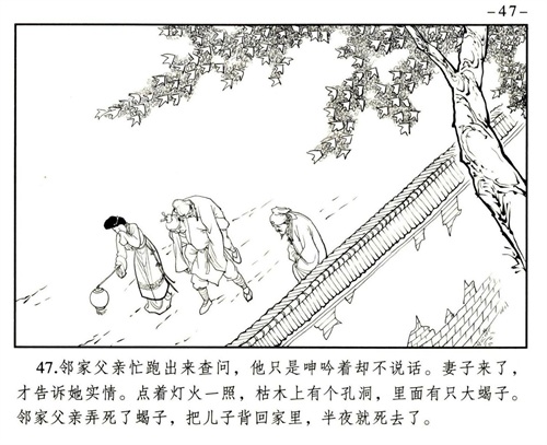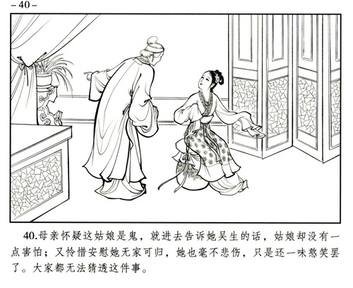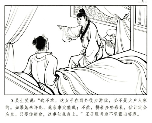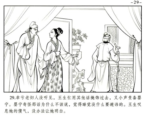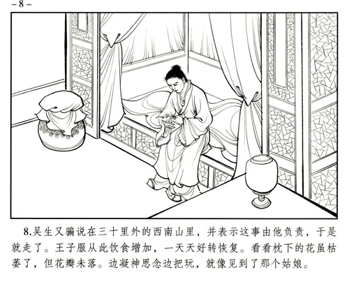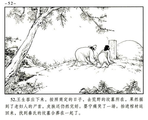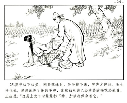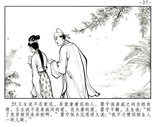 婴宁的目的很直白,就是将其母的骨骸与其父合葬。王子服的痴情感动了单纯善良的婴宁,美丽的婴宁以德报怨放下仇恨与王子服好好在一起了,婚后两人孕有一子。