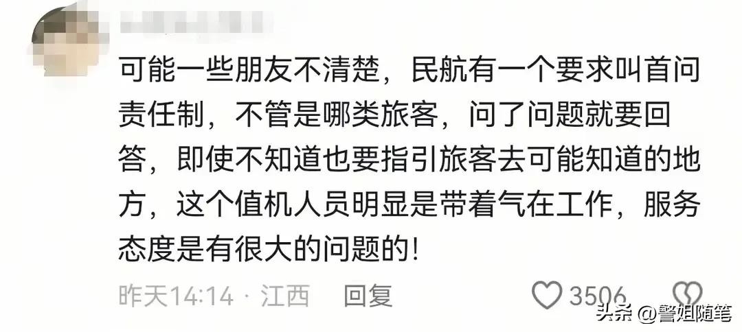 网友们对此炸开了锅,纷纷表示震惊与愤怒。有网友指出,民航规定首问责任制,无论旅客提出什么问题,工作人员都应该耐心解答或引导。