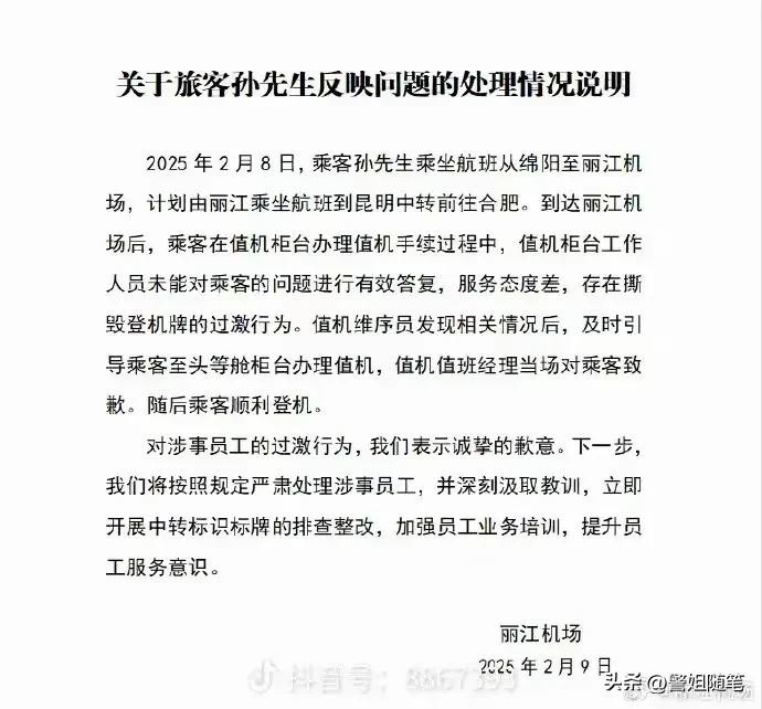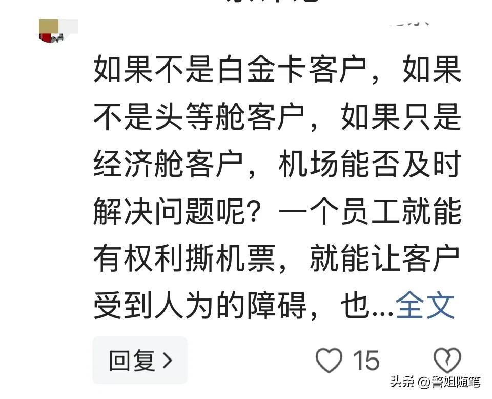 事情的起因是在丽江机场,一名身份特殊、尊贵的卓越终身白金卡会员的登机牌被值机人员私自撕毁,网上值机也无故取消。这一事件被公开曝光,引发了广泛的讨论与共鸣。
