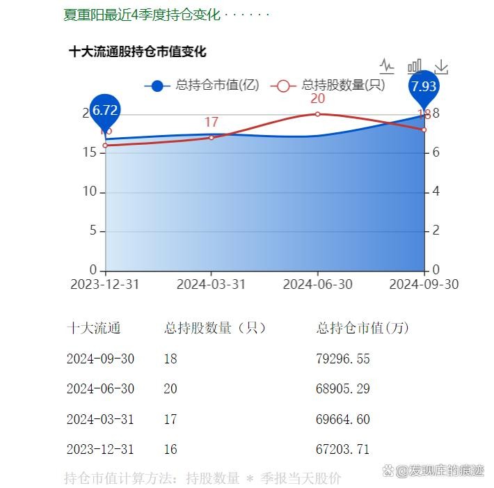 夏重阳是一位在A股市场颇有名气的投资者,以其独特的投资风格和丰富的投资经验而著称。他善于利用股票技术指标和基本面分析进行选股,且多次成功捕捉到市场热点和投资机会。他擅长捕捉低价、小盘股以及具有重组概念的股票,这些股票往往具有较高的成长潜力和投资价值。通过精准的投资布局和持续的市场观察,夏重阳在A股市场中取得了显著的收益。我们通过整理三季度报告来看一下他重仓了哪些股票?