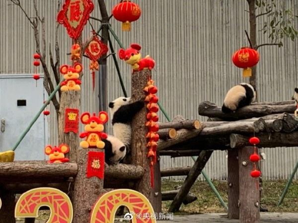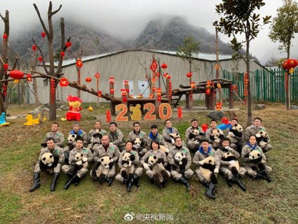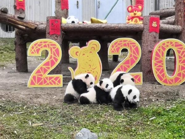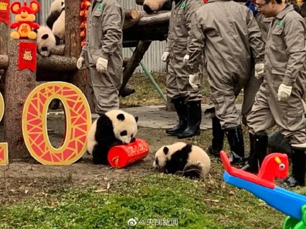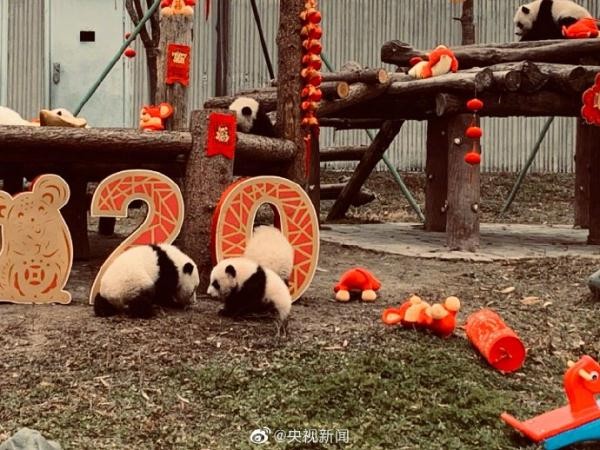 今天,中国大熊猫保护研究中心20只2019年出生的大熊猫宝宝,在卧龙神树坪基地幼儿园集体亮相,“圆”气十足拜大年,向大家送上新春的祝福!(来源:央视新闻微博)
