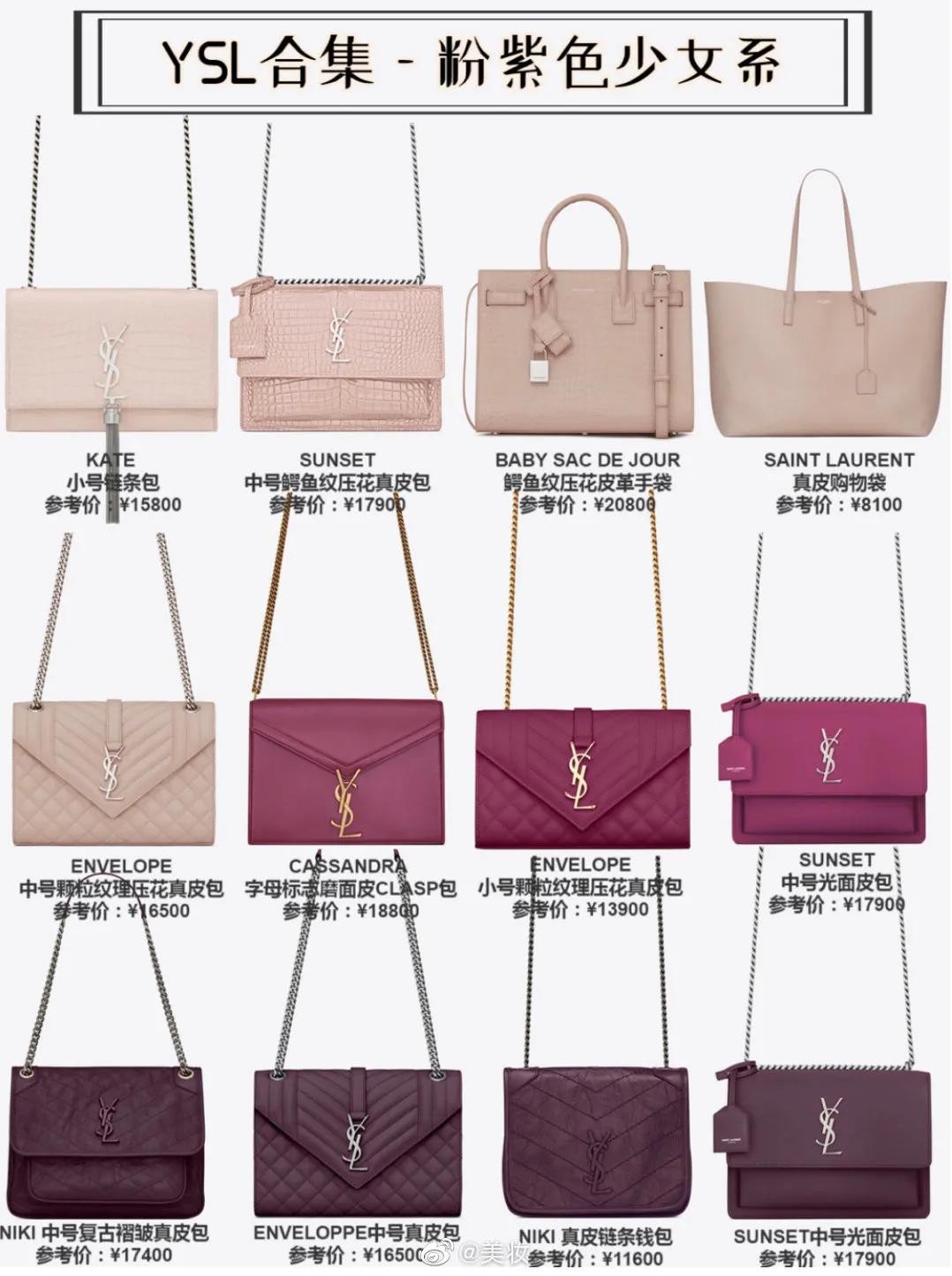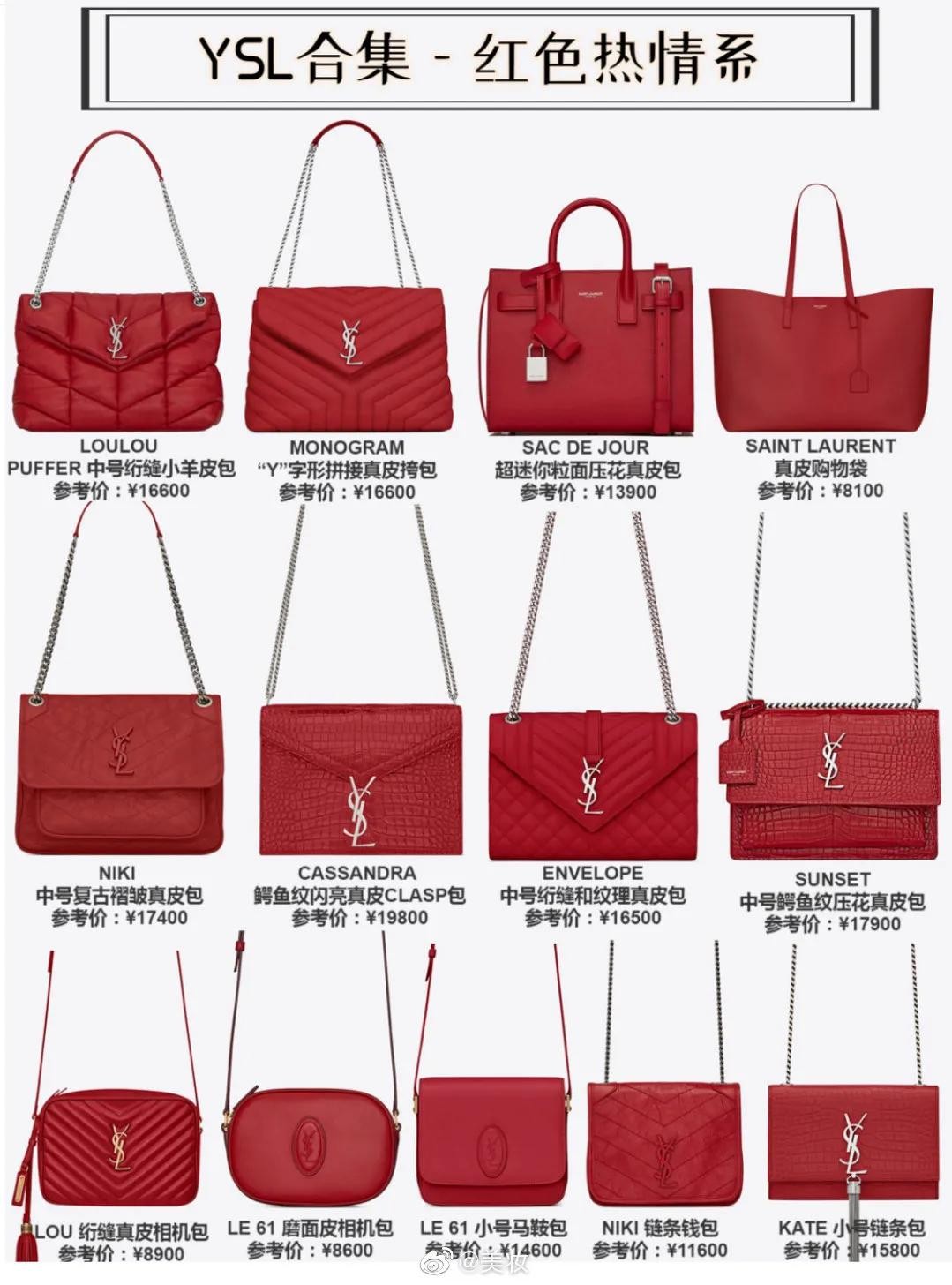 这期给大家分享YSL的包包哦,都是最热门颜值爆表的几款,各种颜色,各种风格的都有,你最心仪的是哪一款呢?我超喜欢黑色和红色的那几款,真的超级爱人呀。话不多说看看吧!(图片来自微博如有侵权请联系删除)