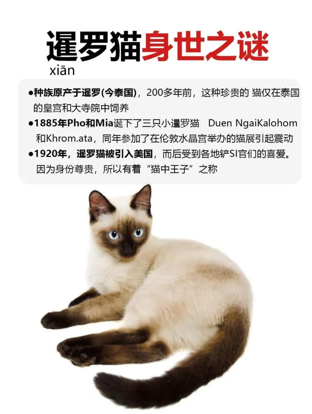 暹罗猫的正确读音是xiān luó māo,这下都会读了吧~