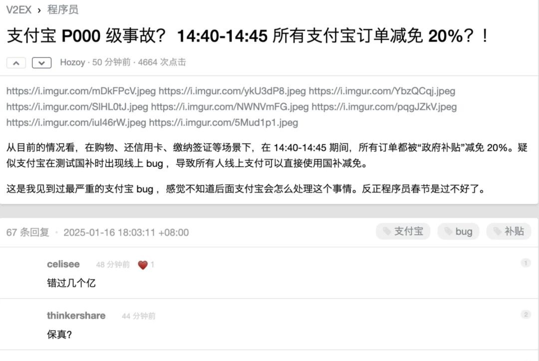 所有订单减免20%,网友曝支付宝出现重大事故
