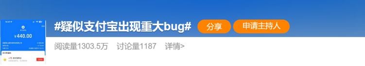 1月16日晚,话题#疑似支付宝出现重大bug#冲上热搜。