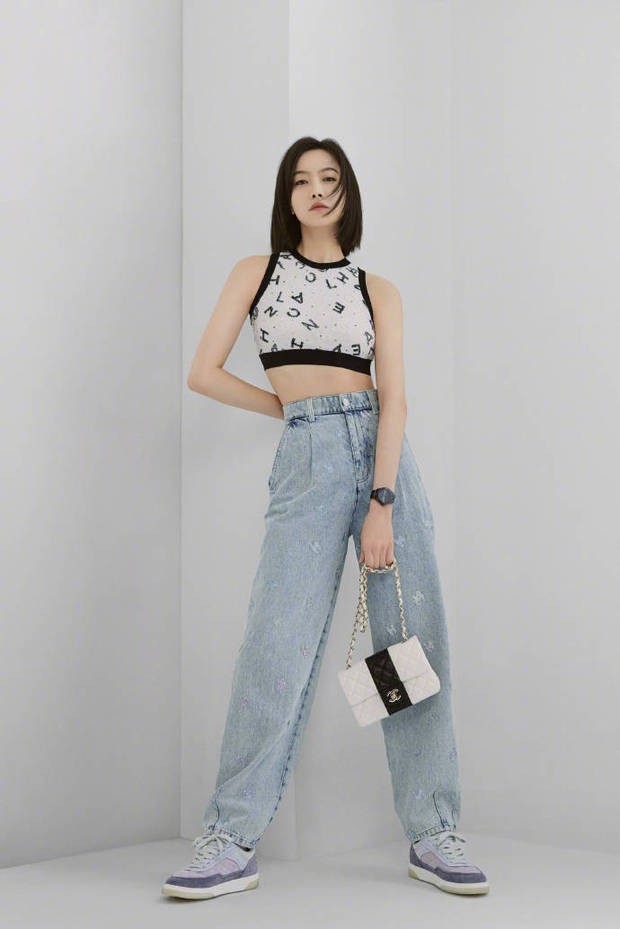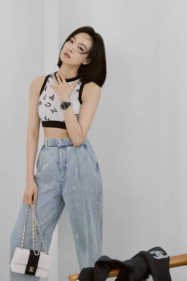 宋茜短上衣露出小蛮腰,身材高挑。