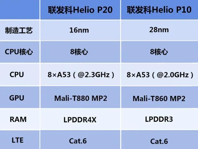 联发科p20是联发科p10处理器的升级版,那么这款处理器比上一代处理器的性能增加了什么呢?联发科p10处理器又称MT 6750,八核心,8xARM,coretex_A53 1.5GHz,Mali_T860图形处理器,28nm制成工艺,联发科p20又称MT6757,联发科p20从28纳米制作工艺提升到了16纳米的制作工艺,同样的采用了八核心,有8层a53架构2.3 ghz,Mali_T880MP2图形处理器,最高支持6 GB运存,综合性能提升了25%