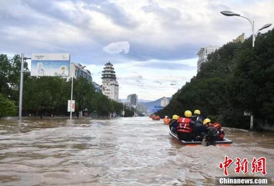 武警丽水支队组织经验丰富的官兵携带6艘冲锋舟及部分救援器材跨区星夜驰援台州临海。刘治乾 摄