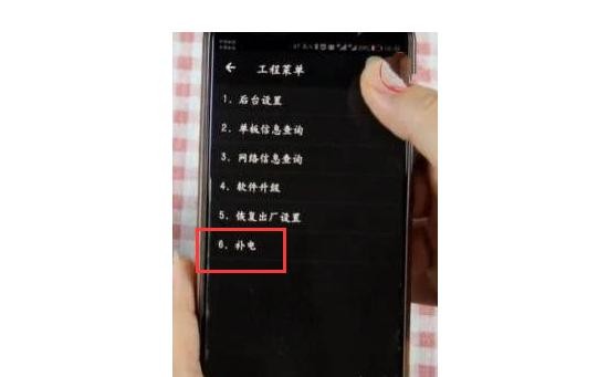 可以看到当输入完成之后,手机界面系统就会跳出这样的一个页面,即进入工程菜单,其他设置项我们不要乱动直接点击最后一项补电就可以了。