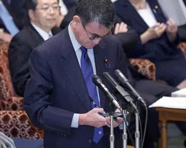 国会答辩掏手机查资料被阻止,河野太郎:“啊,不能用啊”