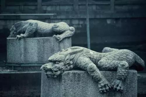 蚣蝮也因其嘴大,肚子里能盛非常多的水,所以亦多用于建筑物的排水口。在故宫、天坛等中国古代经典的宫殿建筑群里经常可以看到蚣蝮的身影。