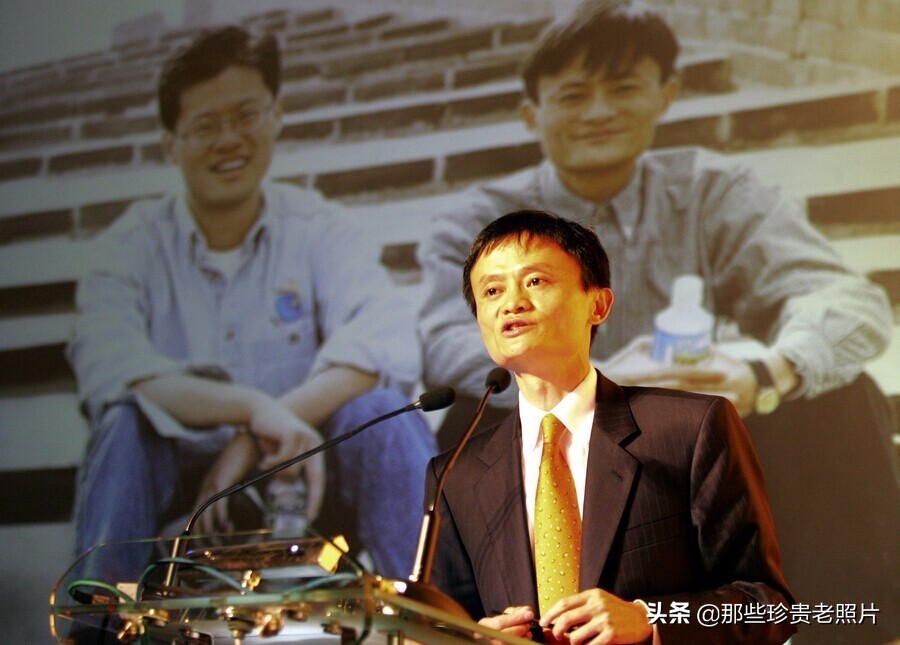 2005年在阿里巴巴的记者会上,背景是马云和杨致远的合影。